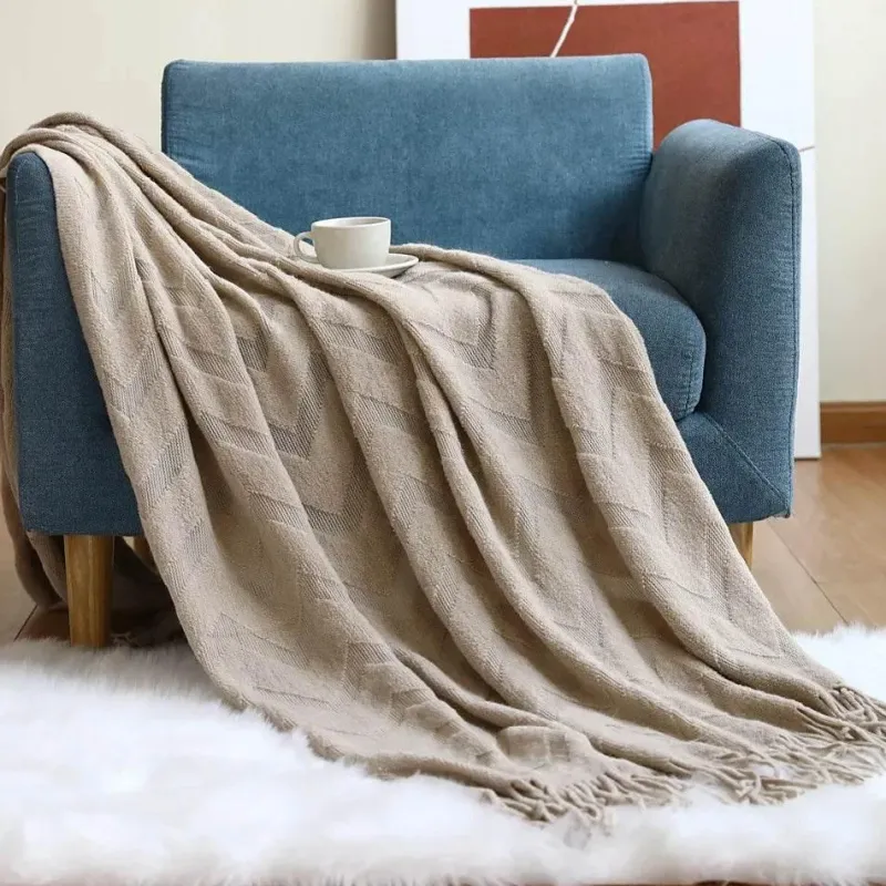 Erleben Sie die Eleganz unserer nordischen Strickdecke – eine perfekte Kombination aus Stil und Komfort, die Ihre Wohnkultur aufwertet. Diese Decke aus 100 % Acryl bietet eine weiche, einladende Textur, die zum Entspannen einlädt.