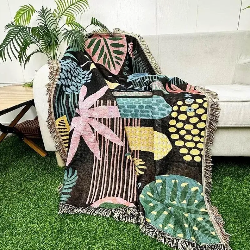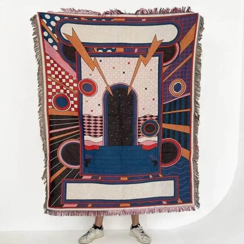 Die elegante, rechteckige Form ist für Erwachsene konzipiert und zeigt ein lebendiges geometrisches Muster, das jedem Raum eine elegante Note verleiht. Ob beim Picknick im Park, auf Reisen oder beim gemütlichen Zuhause – diese vielseitige Decke ist ein unverzichtbarer Begleiter für verschiedene Aktivitäten.