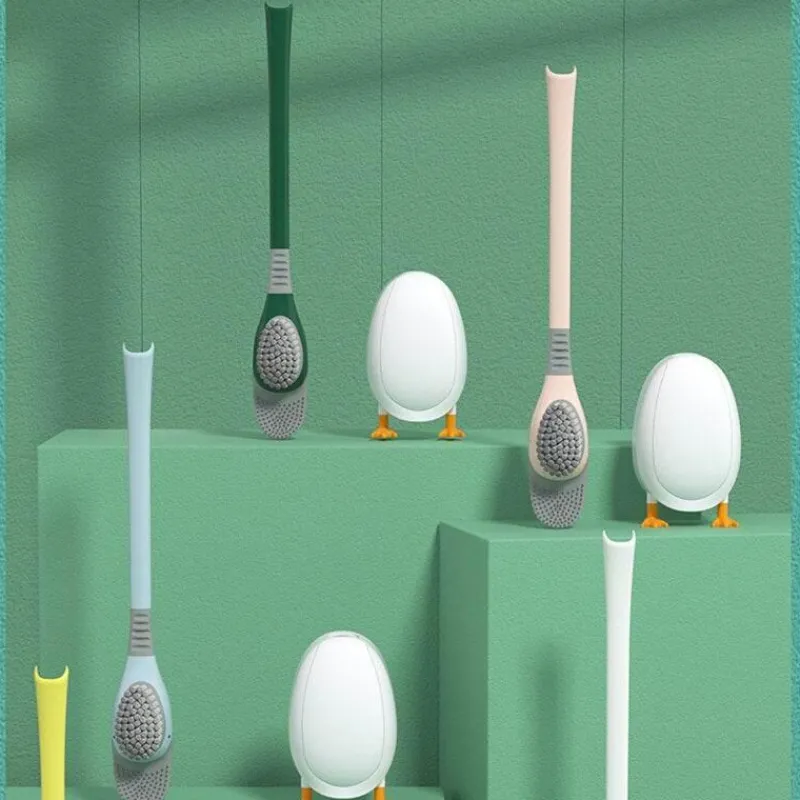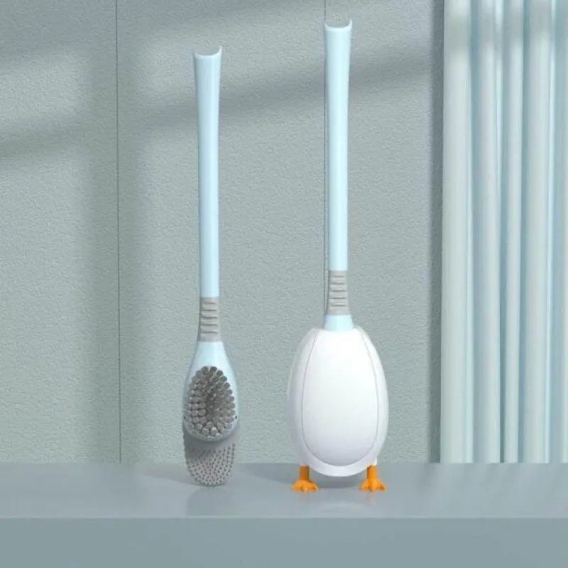 Diese Silikon-Badezimmerbürste in Entenform verfügt über weiche Borsten aus thermoplastischem Gummi (TPR), die sanft zur Toilettenoberfläche sind und Kratzer vermeiden. Die Silikonborsten bieten hervorragende Reinigungseigenschaften, erreichen mühelos die Ränder des Toilettensitzes und bekämpfen effektiv Kalkflecken. Im Gegensatz zu herkömmlichen Bürsten ist dieses Design schmutzabweisend und leicht zu reinigen. Es behält seine ursprüngliche Form und sorgt so für eine gleichbleibende Reinigungsleistung.