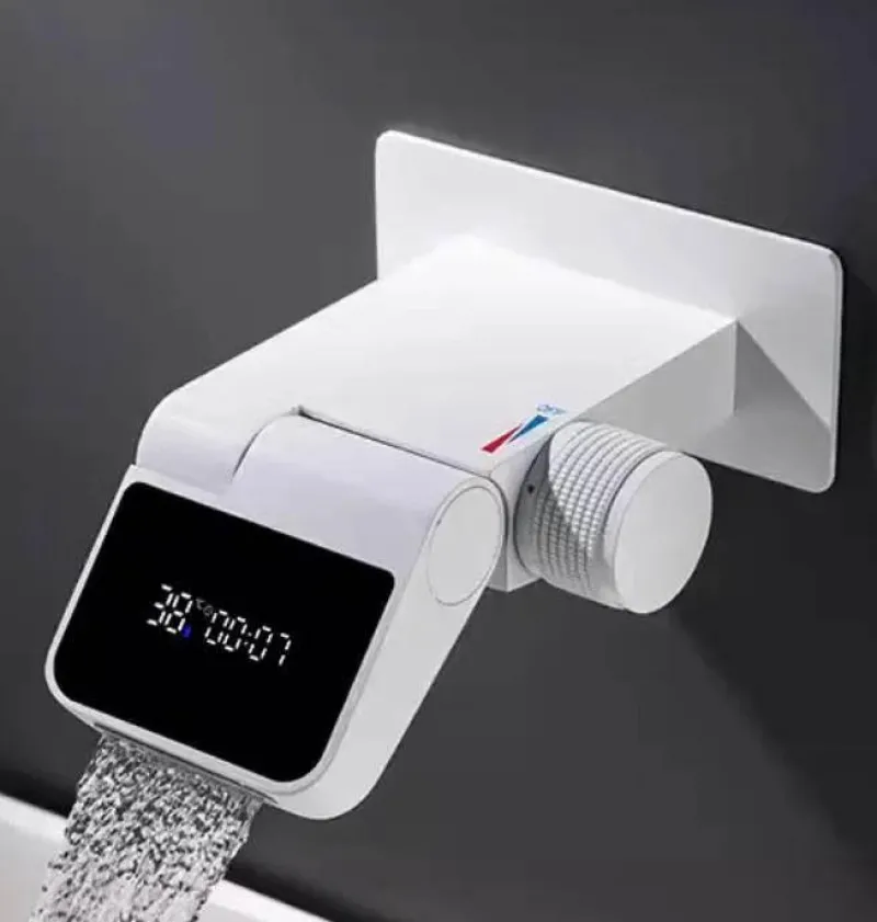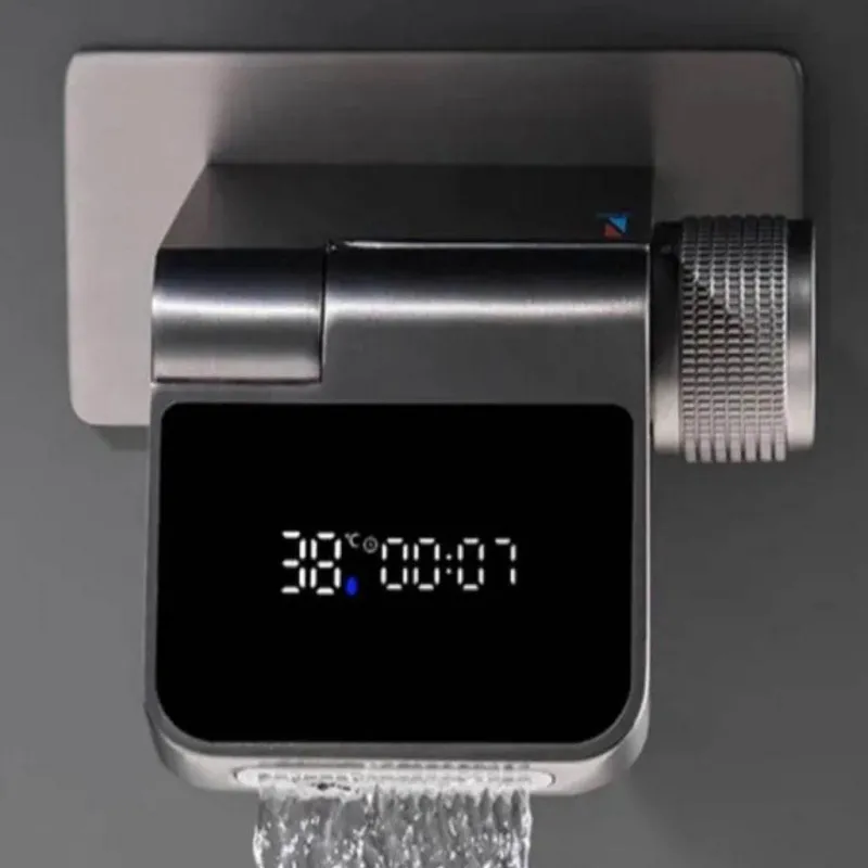 1x moderner, berührungsloser Wasserhahn mit einstellbarer Durchflussmenge und LED-Temperatur.
