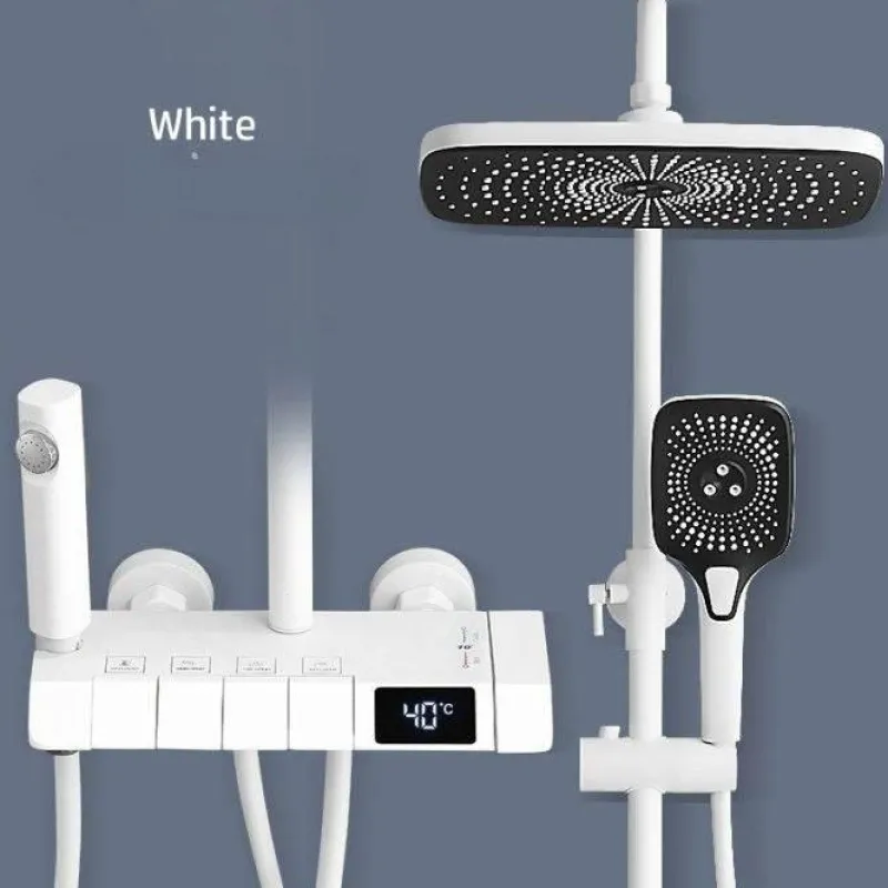 Transform your bathroom into a serene oasis with the Elegant Symphony Rainfall Digital Shower Set. This contemporary shower ensemble features a spacious rain shower head that creates a soothing, enveloping rainfall experience. Complemented by a versatile hand shower, it provides the ideal solution for rinsing off and enhancing your daily routine. The user-friendly digital controller allows for easy customization of water flow, ensuring a tailored and relaxing retreat.
