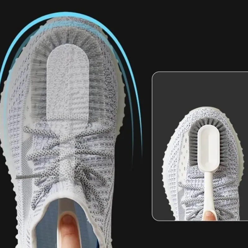 Die Mikrofaserborsten der Bürste dringen tief in Schuhe und enge Zwischenräume ein, während der gebogene Kopf schwer erreichbare Ecken effektiv reinigt. Die Spitze ist speziell geformt, um Rillen zu reinigen und Schmutz aus Schuhsohlen zu entfernen. Dank ihrer robusten und gesundheitsschonenden Konstruktion ist sie kinderleicht zu verstauen und zu pflegen.