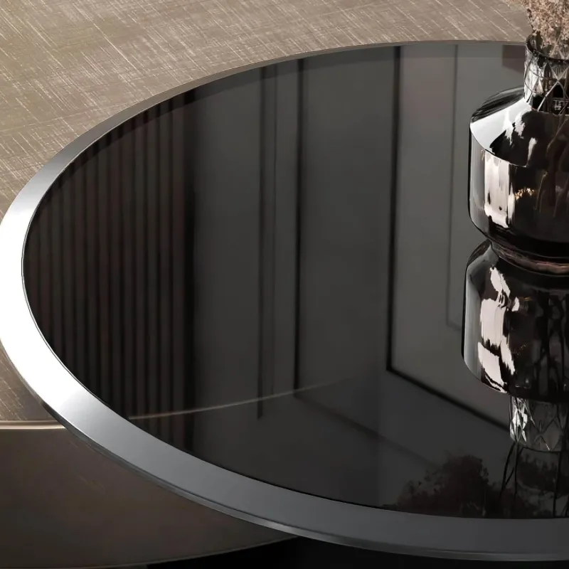 Der Mazarine Couchtisch wertet jeden Wohnraum mit seiner faszinierenden Mischung aus Bronze- und Schwarztönen auf und setzt ein markantes optisches Statement. Sein elegantes Design vereint raffinierte Ästhetik mit robuster Konstruktion und besticht durch Akzente aus gebürstetem Edelstahl, eine elegante schwarze Titanplatte und einen stabilen Fuß aus Karbonstahl. Dieses Möbelstück verkörpert dezenten Luxus und kultivierten Charme und ist vom zeitlosen viktorianischen Queen-Stil inspiriert. Ob Sie Gäste bewirten oder einen ruhigen Moment genießen – der Mazarine Couchtisch wertet das Ambiente Ihres Zuhauses auf und lädt mit seiner Schönheit und Handwerkskunst zum Bewundern ein.
