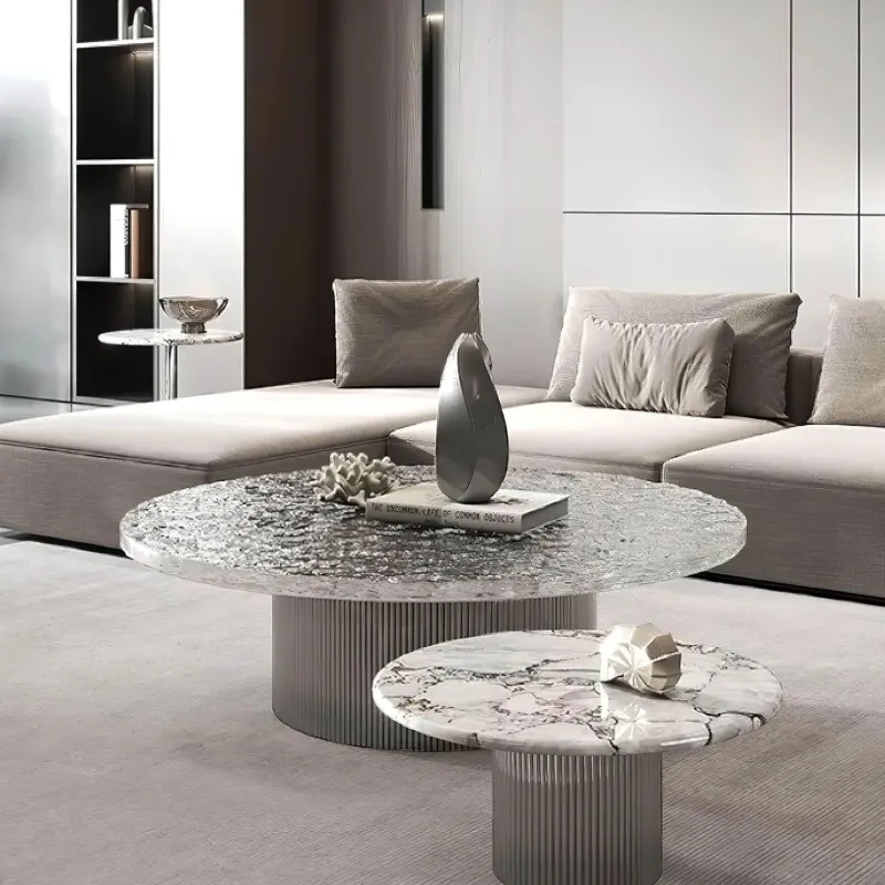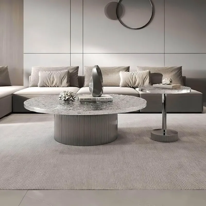 Entdecken Sie die harmonische Verbindung von modernem Stil und Funktionalität mit dem Amorette Couchtisch-Set. Dieser Couchtisch im runden Design mit kristallklarer Acrylplatte verleiht Ihrem Wohnbereich einen Hauch von Eleganz. Sein schlanker Stahlfuß stützt den Tisch nicht nur, sondern unterstreicht auch seine moderne Ästhetik. Das anpassungsfähige Design bietet Ihnen die Flexibilität, Ihr Arrangement ganz einfach individuell zu gestalten – kombinieren Sie den Haupttisch mit einem Marmor-Beistelltisch für einen klassischen Akzent oder wählen Sie einen zusätzlichen Acryl-Beistelltisch für eine einheitliche, moderne Atmosphäre.