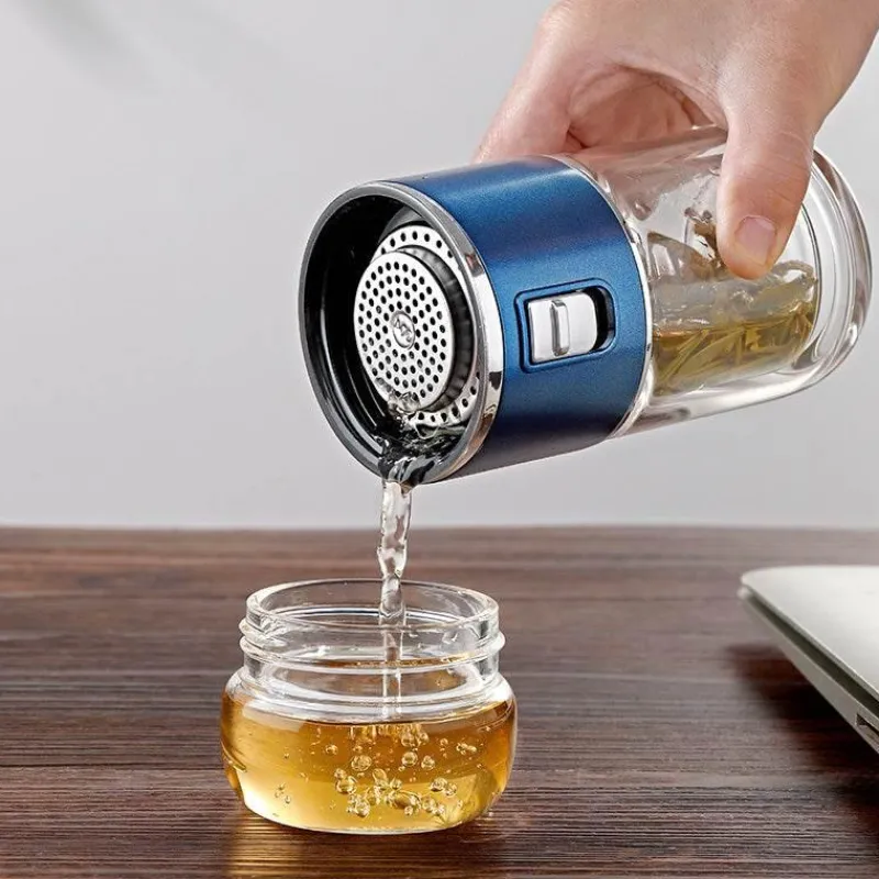 Erleben Sie den Genuss Ihrer Lieblingsgetränke mit dieser doppelwandigen Glas-Thermosflasche mit Teesieb – ein idealer Begleiter für Teeliebhaber unterwegs. Diese Thermosflasche aus doppelwandigem Borosilikatglas verfügt über einen Vakuumverschluss, der die Temperatur Ihres Getränks konstant hält und es über längere Zeit heiß oder kalt hält. Das integrierte Sieb ermöglicht müheloses Teebrühen und sorgt für einen vollen und authentischen Geschmack bei jedem Schluck.