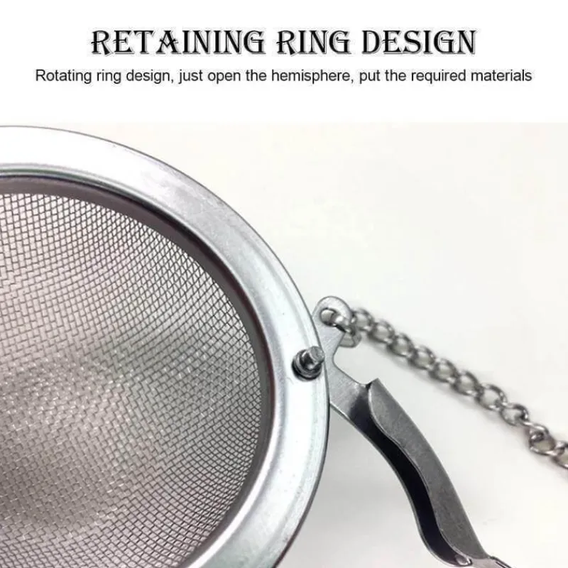 Erleben Sie den Komfort unserer Gewürzkugel aus Edelstahl, einem ultrafeinen Kräutersieb für müheloses Aufbrühen. Dank Haken und langer Kette lässt sich dieses Sieb ganz einfach an Ihrer Teetasse oder Kanne befestigen und nach dem Ziehen Ihres Tees leicht entnehmen.