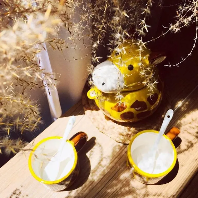 Begeistern Sie Ihre Gäste und werten Sie Ihren Getränkeservice mit diesem einzigartigen Küchengeschirr mit Giraffenmotiv auf.