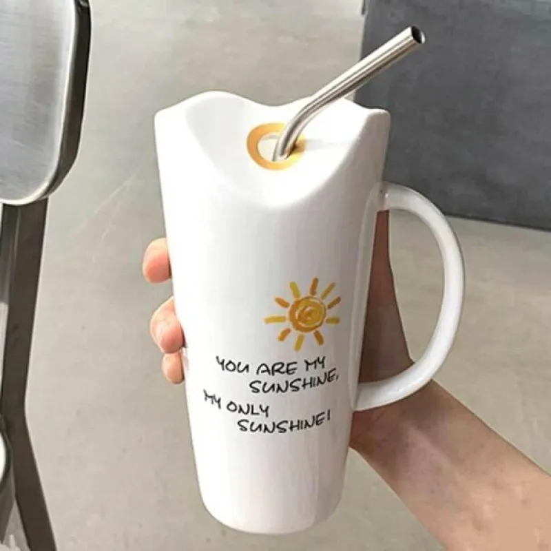 1 x eleganter Good Vibes-Keramikbecher und Strohhalm aus Stahl/Glas.