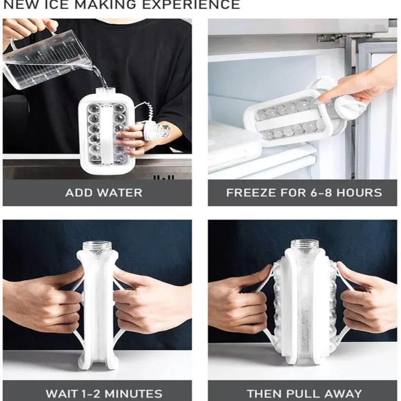 Der benutzerfreundliche Krug fasst bis zu 17 Eiswürfel in Hockey-Puck-Form und sorgt so für schnelles und effizientes Kühlen. Sowohl der Flaschenverschluss als auch der Flaschenkörper verfügen über ein verlustsicheres Kettendesign, das eine flexible Demontage und einen einfachen Transport ermöglicht.