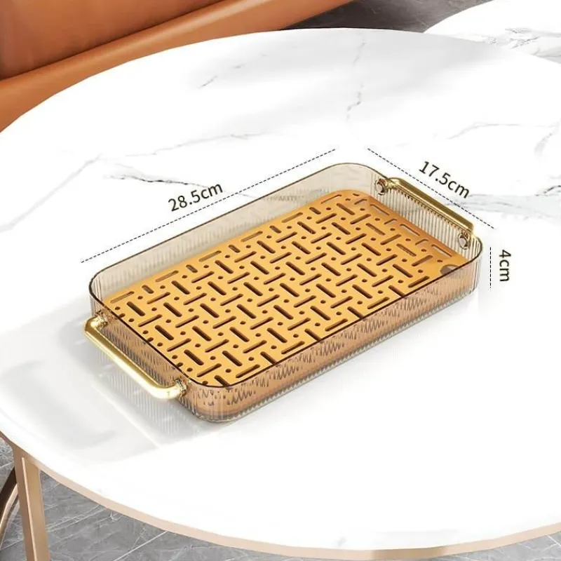 Das rechteckige Design eignet sich perfekt für die Aufbewahrung verschiedenster Gegenstände, von Geschirr bis Obst, während das Gittermuster für einen Hauch von Eleganz sorgt. Das Tablett aus strapazierfähigem Kunststoff ist leicht zu reinigen und zu pflegen und somit eine praktische Wahl für den täglichen Gebrauch.