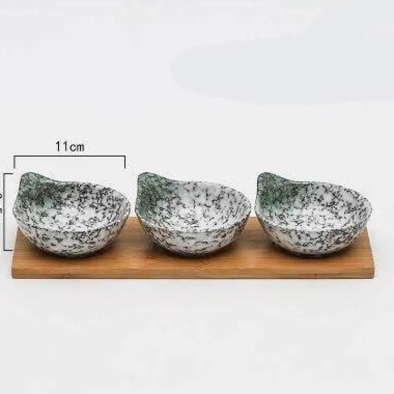 1 x 3er-Set Snackteller mit Holztablett – ideal für die stilvolle Präsentation Ihrer Lieblingssnacks. Verschönern Sie Ihre Gäste mit diesem charmanten Geschirr, das Kunstfertigkeit und Funktionalität vereint.