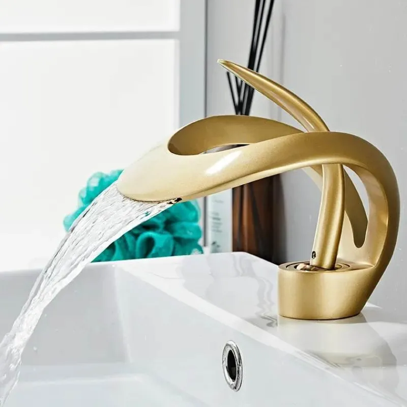 Dieses Angebot umfasst einen kreativ gestalteten Messing-Wasserfallhahn, der Ihren Raum mit seiner einzigartigen Ästhetik und Funktionalität verzaubert. Erleben Sie die perfekte Verbindung von Eleganz und Modernität mit dieser markanten Ergänzung für Ihr Zuhause.