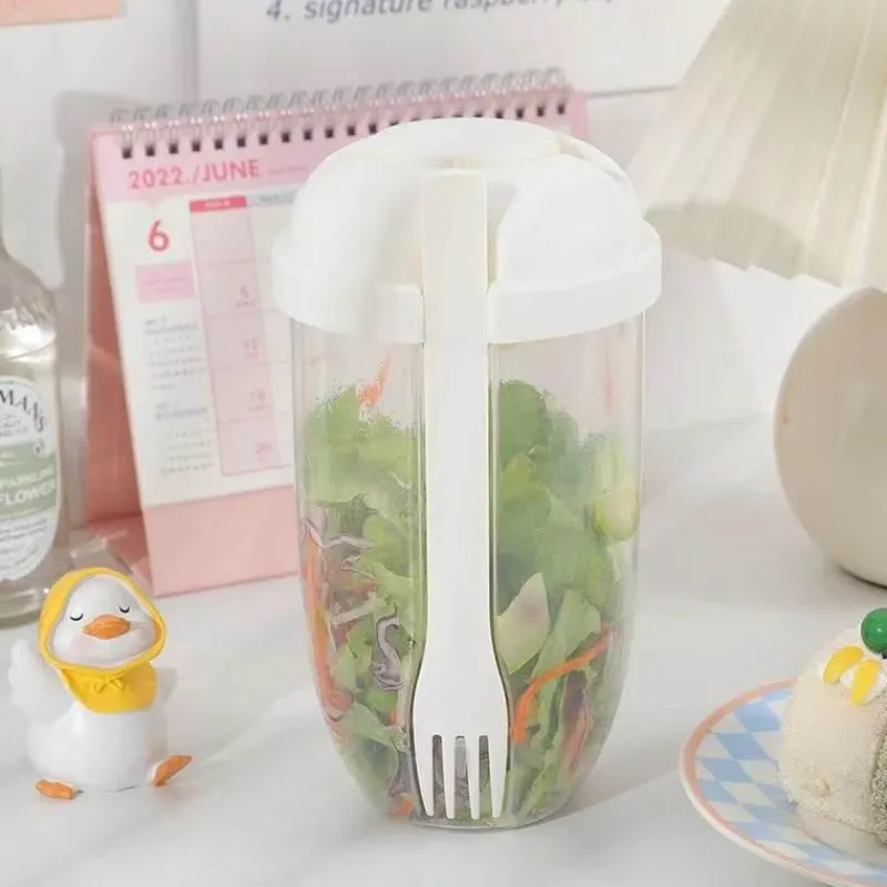 1 x tragbarer Mini-Salatbecher mit integrierter Gabel