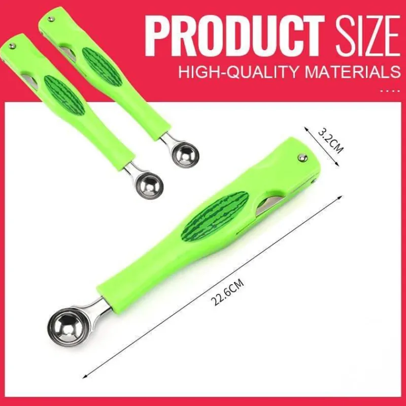 Erleben Sie mühelose Obstzubereitung mit diesem vielseitigen 3-in-1-Wassermelonenschneider, der Ihre Küchenarbeit vereinfacht. Dieses innovative Werkzeug schneidet Wassermelonen nicht nur präzise, sondern verfügt auch über einen Kugelausstecher und eine Gabel, mit denen Sie köstliche Fruchtkugeln herstellen und gleichmäßige Scheiben schneiden können – alles mit einem praktischen Gerät. Die Zubereitung schöner Obstplatten wird zum Kinderspiel und macht ihn zur perfekten Wahl für Familienfeiern oder besondere Anlässe.