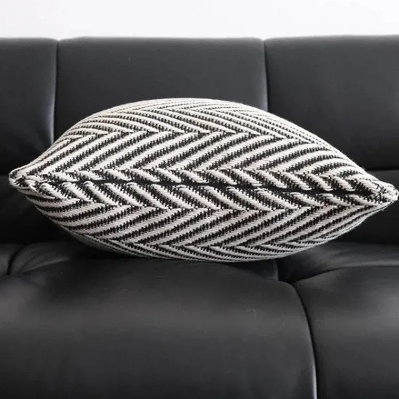 Wir präsentieren unsere wunderschön gefertigten Kissenbezüge mit gewebtem Wollhäkelmuster in auffälligem Schwarz und Weiß – die ideale Wahl für Ihre Wohnkultur. Diese dekorativen Bezüge bestehen aus einer luxuriösen Polyester-Baumwollmischung und bestechen durch ihr faszinierendes geometrisches Muster, das modernes Flair mit klassischem Charme harmonisch verbindet.
