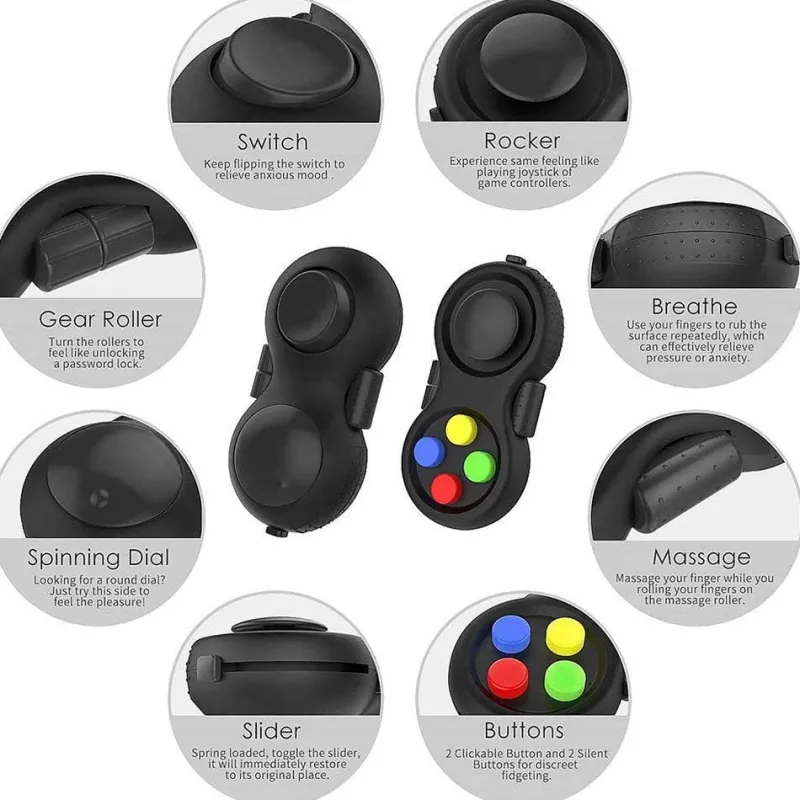 Erleben Sie die einzigartig befriedigende Gleitbewegung dieses Mini-Gamecontroller-Zappelspielzeugs – perfekt für alle, die einen Moment Stress abbauen möchten. Ob Sie Ihre Finger massieren oder einfach das taktile Vergnügen des Rollens genießen möchten, dieses Gadget bietet alles. Führen Sie sanfte Rollbewegungen aus, die an das Öffnen eines Zahlenschlosses erinnern, und setzen Sie das Gerät einfach durch Umschalten des Paddels zurück. Zappeln Sie mit dem Schalter wie mit einem Becher oder drehen Sie den runden Drehknopf. Für ein diskretes Zappelerlebnis drehen Sie den Schalter sanft hin und her; für ein deutlicheres Klicken zappeln Sie schnell. Verabschieden Sie sich von Angstzuständen, während Sie über die strukturierte Oberfläche reiben, die entwickelt wurde, um Stress abzubauen.