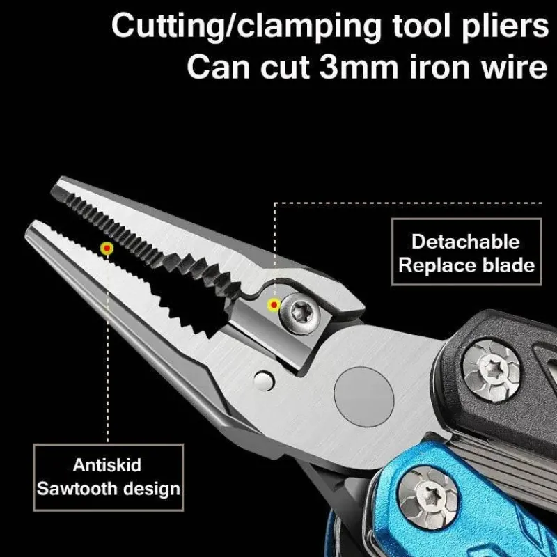 Dieses Werkzeug aus robustem 420er Edelstahl mit einem Griff aus Aluminiumlegierung ist robust und dennoch leicht für den Transport. Mit Abmessungen von 170 mm x 85 mm (6,69 x 3,35 Zoll) und einem Gewicht von nur 425 g eignet es sich perfekt für eine Vielzahl von Anwendungen, darunter Camping, Erkundung, Erste Hilfe, Demontage und Bau.