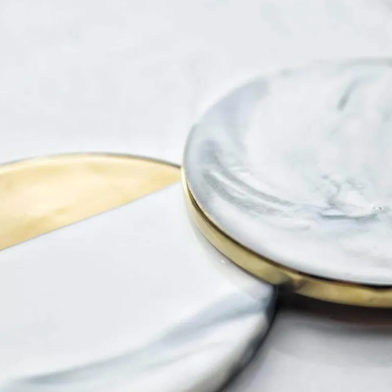 Werten Sie Ihr kulinarisches Erlebnis mit unserem luxuriösen Keramikuntersetzer mit Marmorstreifen im europäischen Stil auf. Dieser Untersetzer aus hochwertiger Keramik vereint Funktionalität und Eleganz und ist somit die perfekte Ergänzung für jedes Zuhause oder Büro.