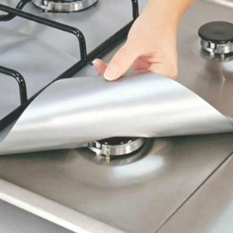 – 4 wiederverwendbare Gasherd-Abdeckungen aus Glasfaser.