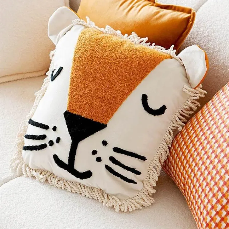 Bringen Sie den verspielten Geist der Wildnis mit dem King Maji Kissenbezug in Ihren Wohnraum. Dieser einzigartige, dekorative Kissenbezug besticht durch ein handgesticktes Löwengesicht mit skurrilen Details und ist ein Blickfang in jedem Raum. Die strukturierte Fransenmähne bietet ein haptisches Erlebnis, während die weichen Plüschohren eine reizende Note verleihen, die zum Mitmachen einlädt.