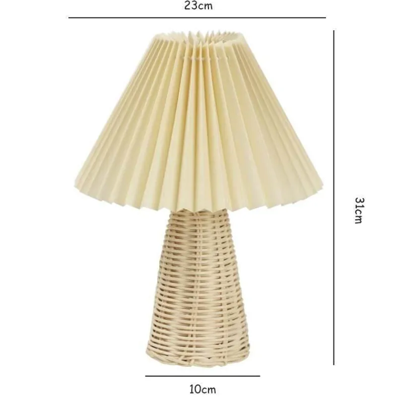 Verwandeln Sie Ihr Schlafzimmer mit unserer Rattan Plissee-Tischleuchte, die eine beruhigende Atmosphäre schafft. Dieses elegante Beleuchtungsstück besticht durch einen wunderschön plissierten Stoffschirm, der den fein gearbeiteten Rattanfuß perfekt ergänzt und Ihre Wohnkultur perfekt ergänzt.