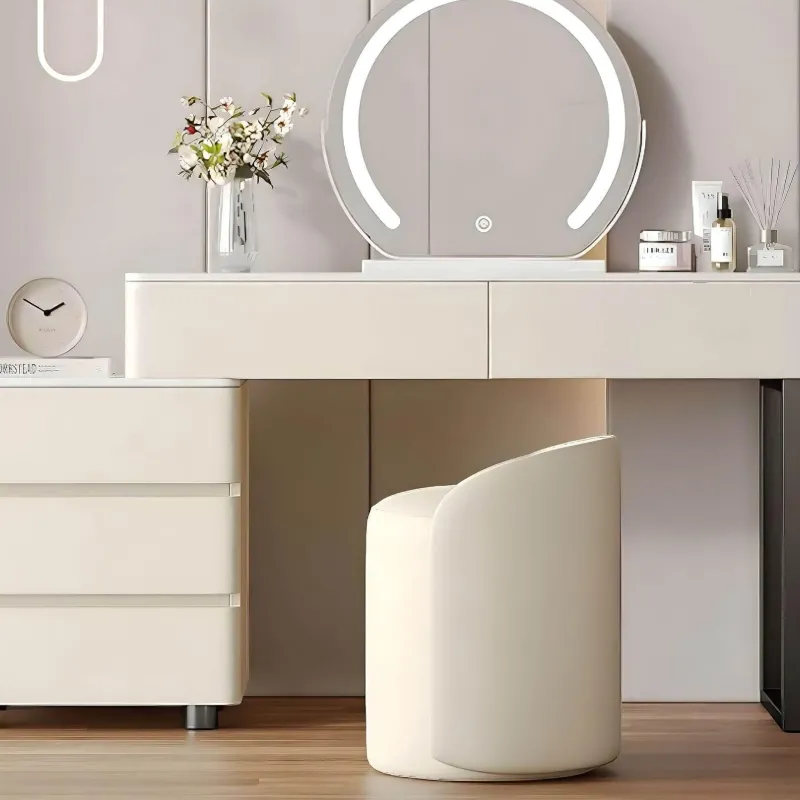 Dieser praktische Schminktisch verfügt über mehrere Schubladen und Fächer, sodass Make-up und Accessoires gut organisiert und leicht zugänglich sind. Er ist die ideale Ergänzung für jedes Schlafzimmer oder Ankleidezimmer und dient nicht nur als funktionales Möbelstück, sondern auch als stilvolle Bereicherung. Perfekt für alle, die ihre persönliche Pflege verbessern möchten, passt dieser Schminktisch sowohl zu traditionellen als auch zu modernen Einrichtungen.