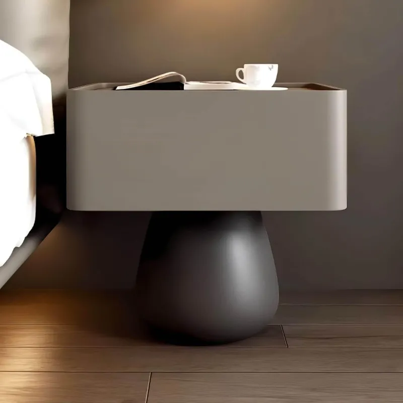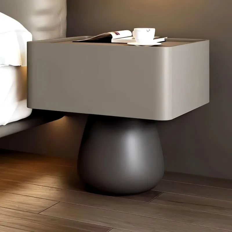Das herausragende Merkmal des Nachttisches ist seine elegant versteckte Schublade. Sie bietet ausreichend Platz, um wichtige Dinge übersichtlich und unsichtbar aufzubewahren und sorgt so für ein sauberes und aufgeräumtes Erscheinungsbild. Sein minimalistisches Design und die glatte Oberfläche werten moderne Einrichtungsstile mühelos auf und machen ihn zur idealen Ergänzung für jeden Wohnraum.