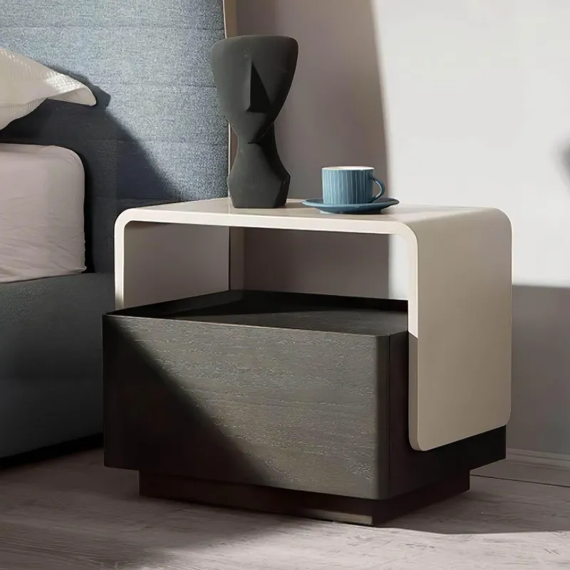 Wir präsentieren den Nachttisch Josue, eine exquisite Verkörperung minimalistischen Designs, das Form und Funktion harmonisch vereint. Gefertigt aus hochwertigem amerikanischem Eichenholz, besticht dieser Nachttisch durch seine langlebige Einbrennlackierung, die seine schlichte Eleganz unterstreicht.