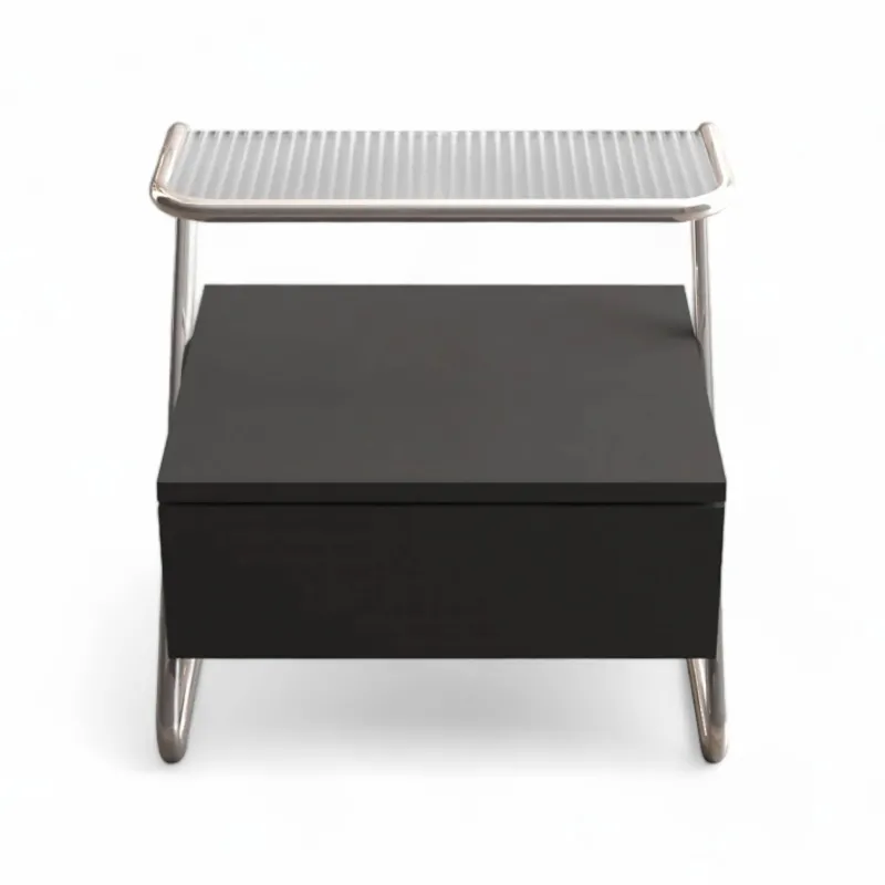 Die durchdachte Schublade und das erhöhte Glasregal bieten praktischen Stauraum für Bücher, Gadgets und persönliche Gegenstände. Diese intelligente Anordnung sorgt dafür, dass alles, was Sie brauchen, griffbereit ist und vereinfacht so Ihre Schlafenszeitroutine.