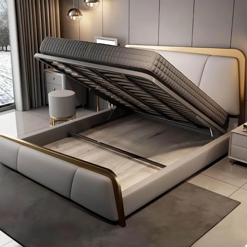 Der robuste Rahmen aus hochwertigen Materialien sorgt für Langlebigkeit und einen Hauch von Eleganz. Das großzügig gepolsterte Kopfteil bietet die perfekte Mischung aus Komfort und Halt und lädt zum Entspannen oder Lesen ein.