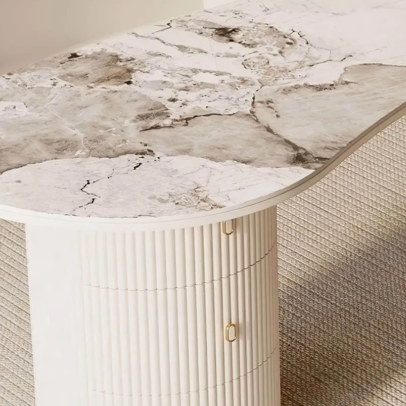 Erleben Sie die perfekte Kombination aus Langlebigkeit und Eleganz mit dem Nino Slate Schreibtisch, der jeden modernen Arbeitsplatz aufwertet. Der robuste Edelstahlrahmen bietet eine solide Basis, während die elegante Schiefersteinplatte Ihrem Ambiente einen Hauch von Raffinesse verleiht und die Professionalität steigert.
