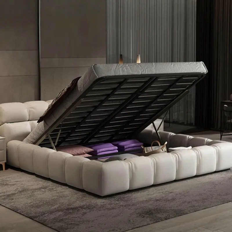 Eines seiner herausragenden Merkmale ist der innovative, aufklappbare Stauraum, der geschickt in das Bettdesign integriert ist. Diese einzigartige Lösung macht Schluss mit überfüllten Räumen und bietet eine nahtlose Möglichkeit, Gegenstände unter der Matratze zu verstauen und für Ordnung zu sorgen.