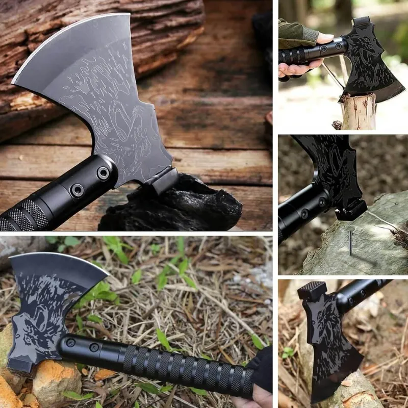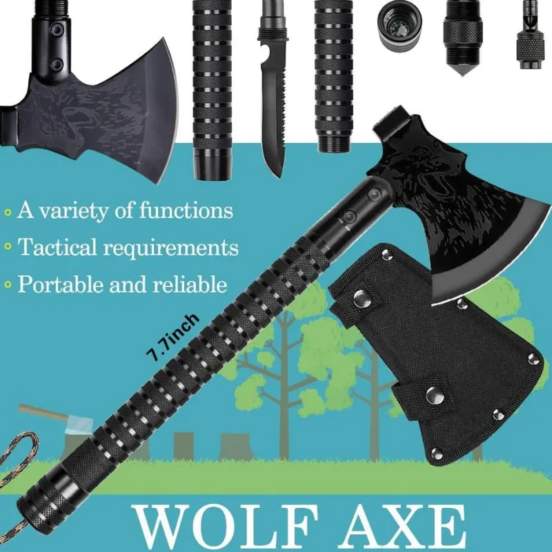 Diese multifunktionale Axt verfügt über eine Vielzahl integrierter Werkzeuge und bietet die nötige Vielseitigkeit für vielfältige Outdoor-Aufgaben. Ob Sie Holz für ein Feuer hacken, einen Unterschlupf bauen oder Mahlzeiten zubereiten – diese kompakte Überlebensausrüstung erfüllt Ihre vielfältigen Bedürfnisse mit Leichtigkeit.