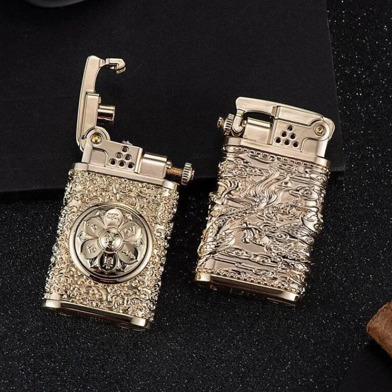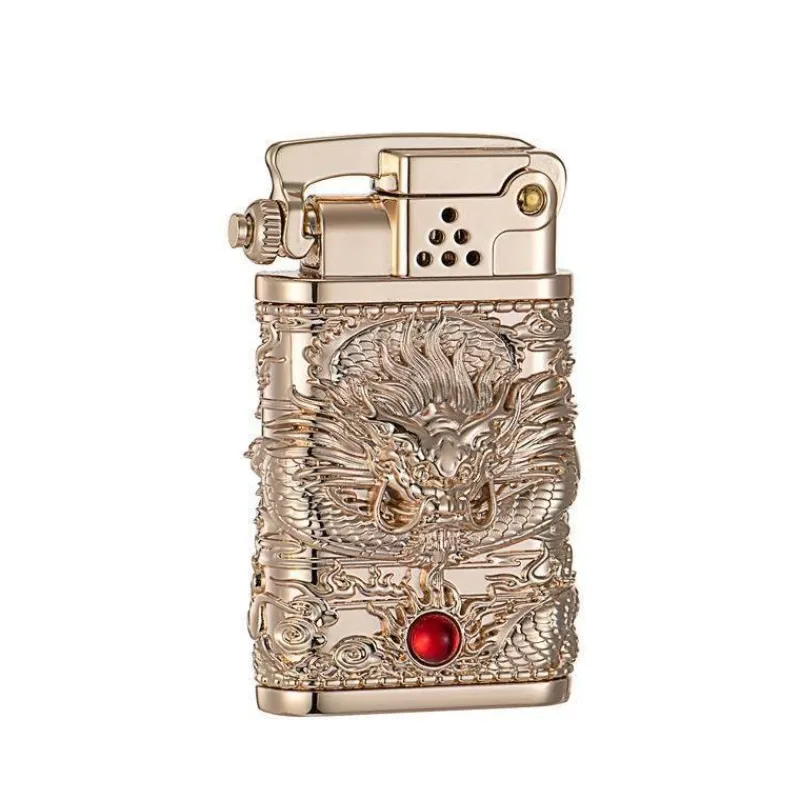 Das Dragon Wings Messing-Petroleumfeuerzeug bietet eine beeindruckende Kombination aus Funktionalität und künstlerischem Design und ist ein echter Hingucker. Das aufwendige Drachenflügel-Motiv auf Vorder- und Rückseite zeugt von exquisiter Handwerkskunst und Liebe zum Detail. Hergestellt aus hochwertigem Messing, ist es nicht nur langlebig, sondern liegt auch angenehm in der Hand.