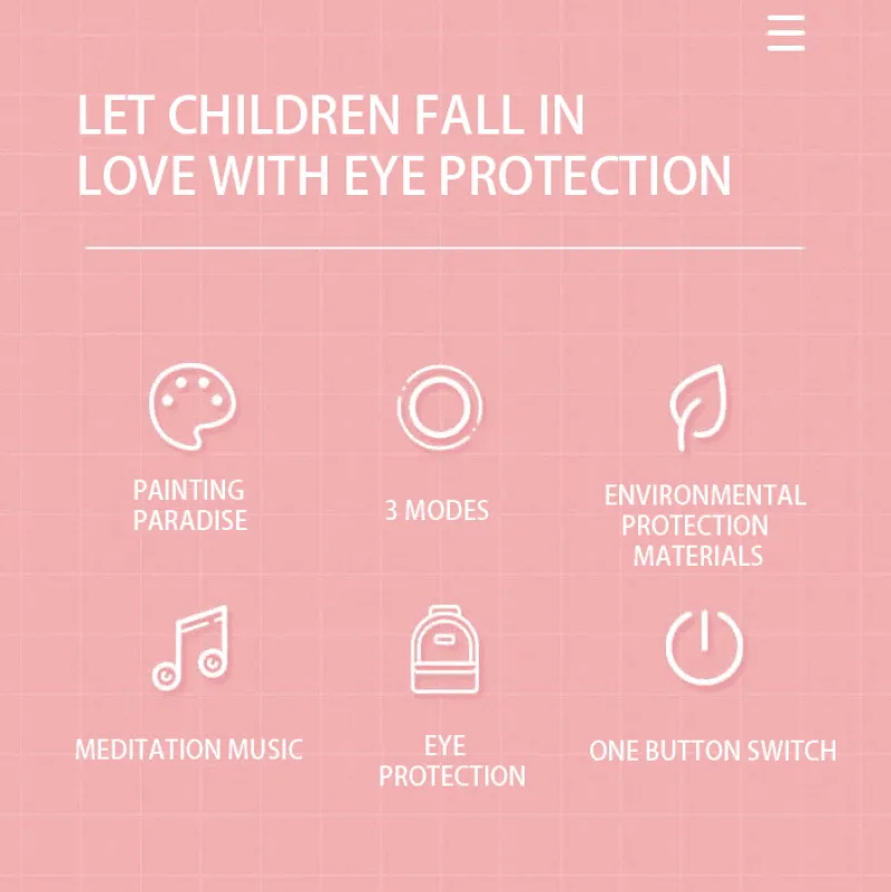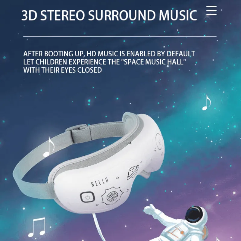 Ausgestattet mit drei einzigartigen Massagemodi kann Ihr Kind eine Reihe entspannender Empfindungen genießen, die auf seine Vorlieben zugeschnitten sind. Beim Einschalten spielt das Gerät automatisch beruhigende Melodien aus der „Space Music Hall“ und verstärkt so die wohltuende Atmosphäre. Die intelligente Konstanttemperaturfunktion sorgt für eine angenehme Wärme von 42 °C um die Augen und sorgt so für ein angenehmes Gefühl während der Anwendung. Dank des benutzerfreundlichen Designs können Kinder das Massagegerät ganz einfach mit nur einer Taste bedienen.