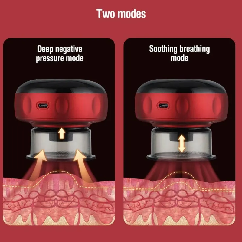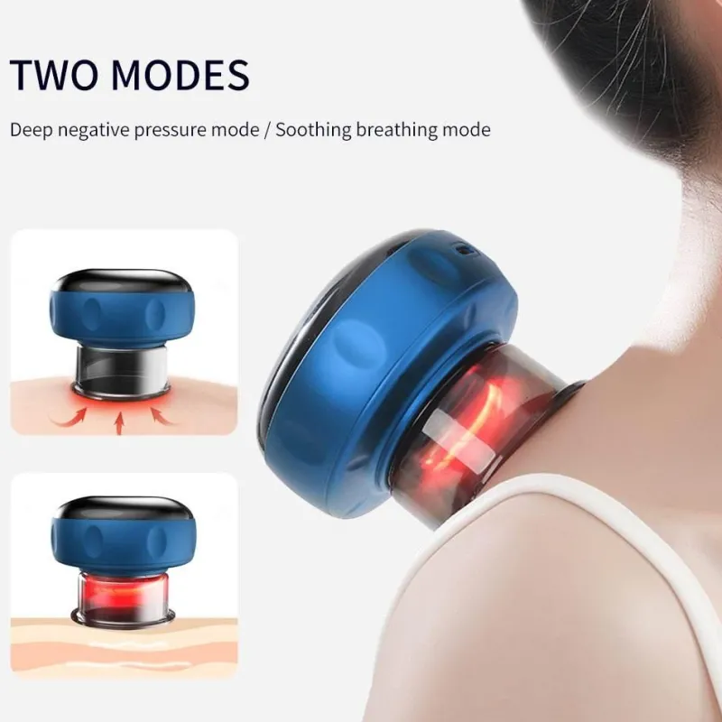 Passen Sie Ihre Massage mit zwei verschiedenen Modi an: dem tiefen Unterdruckmodus, der beim Einschalten aktiviert wird, und dem sanften Atemmodus. Dank dieser Flexibilität können Sie zwischen Schaben, Schröpfen oder traditionellen Massagetechniken wählen, die Ihren individuellen Vorlieben entsprechen. Mit sechs bis neun einstellbaren Unterdruckstufen genießen Sie eine kraftvolle und gleichmäßige Saugkraft ohne die Risiken offener Flammen. Das Gerät bietet außerdem sechs bis neun Stufen Rotlichtheizung für eine intensive Tiefenmassage, die Entspannung fördert und Müdigkeit reduziert.