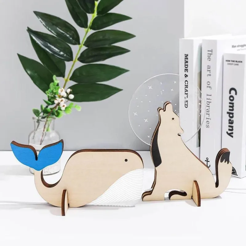 1x LED-Nachttischlampe aus Holz in Tierform.