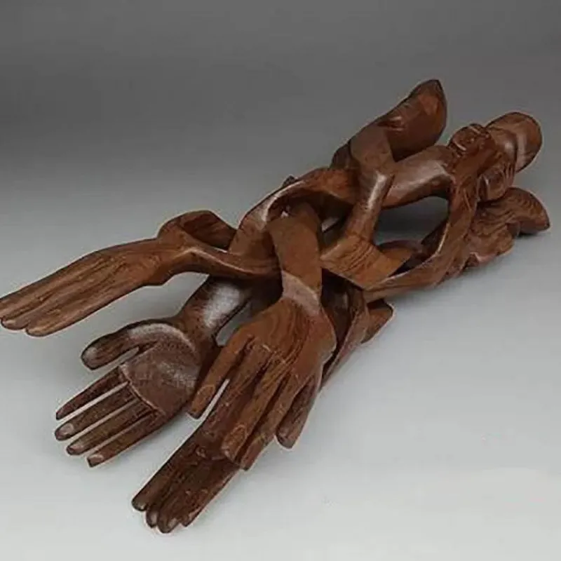 – 1x Serene Sculpture Servierplatte aus Holz mit Glücksbär
