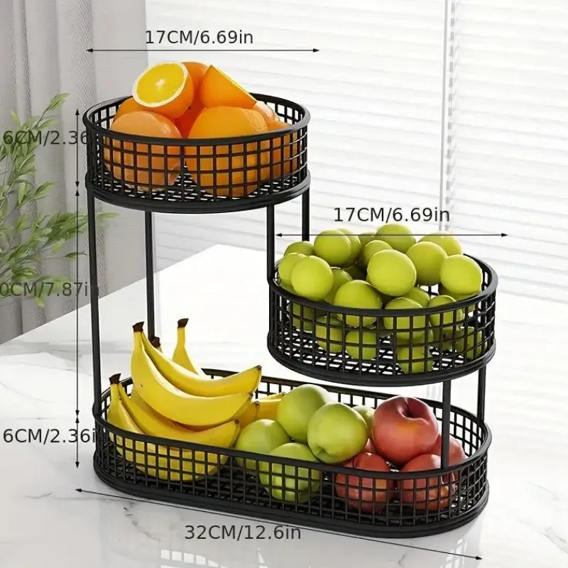 Verschönern Sie Ihre Küche oder Ihren Essbereich mit diesem eleganten, mehrstöckigen Obstkorb aus Metall. Er sorgt für Ordnung und verleiht Ihrem Obst und Gemüse einen stilvollen Touch. Der ovale Korb aus robustem Gusseisen bietet eine robuste und platzsparende Aufbewahrungslösung. Das mehrstöckige Design ermöglicht eine effiziente Organisation und eignet sich perfekt für Arbeitsplatten, Esstische oder die Vorratskammer.