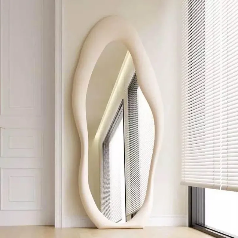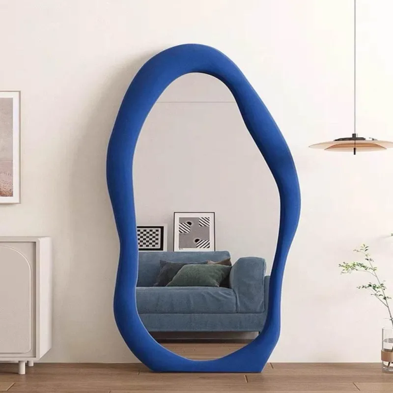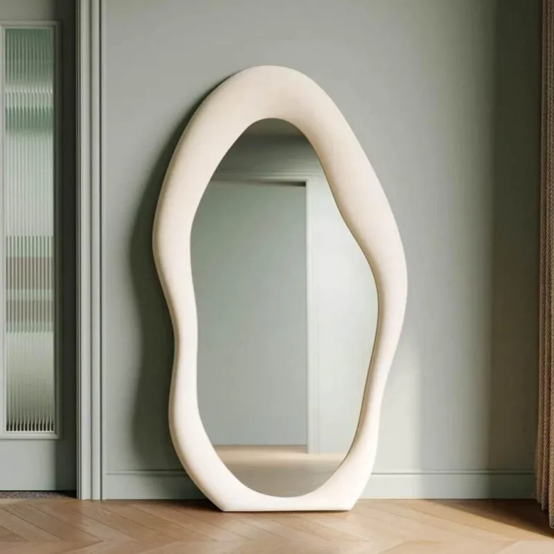**Wie schneidet dieses Produkt im Vergleich zu anderen ab?** Im Gegensatz zu herkömmlichen Spiegeln, die auf Standardformen beschränkt sind, besticht dieses wellenförmig geschwungene Design durch seine unverwechselbare Form und seinen modernen Charme und ist damit sowohl ein praktisches Accessoire als auch ein Ausdruck künstlerischen Geschmacks.