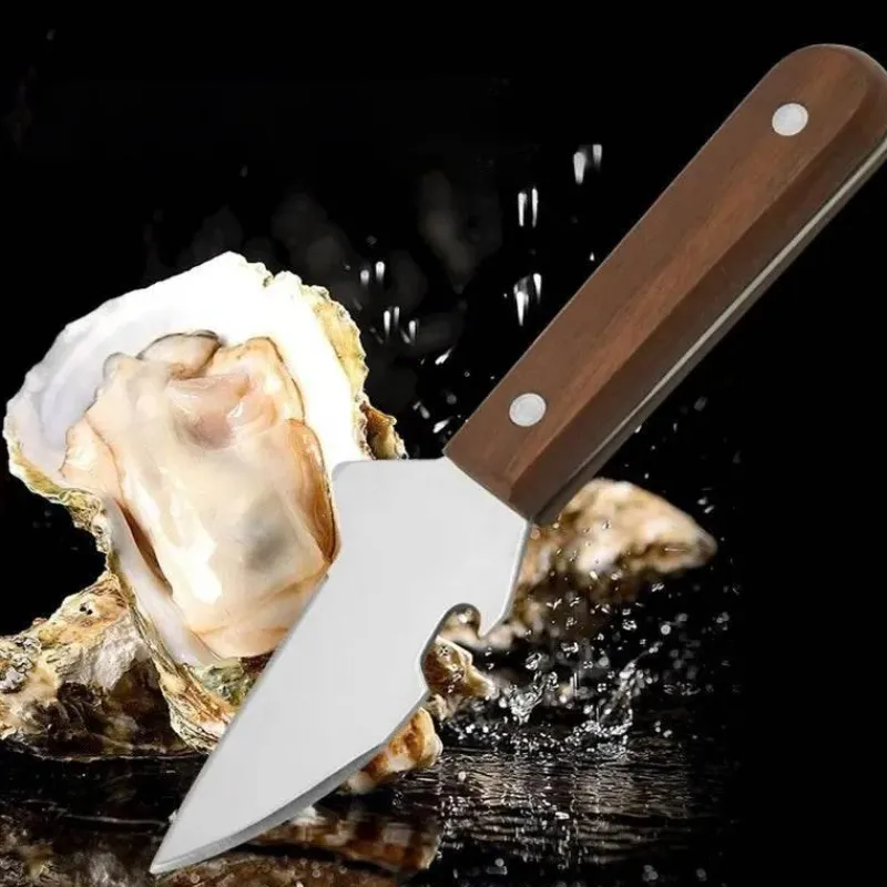 Entdecken Sie ein sorgfältig gefertigtes Austernmesser mit komfortablem Holzgriff, das das Öffnen von Schalentieren mühelos und angenehm macht. Dieses unverzichtbare Meeresfrüchte-Werkzeug ist aus hochwertigen Materialien gefertigt und garantiert Langlebigkeit und Effizienz sowohl für den gelegentlichen Verzehr als auch für den professionellen Koch.