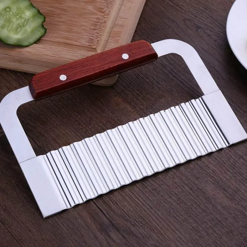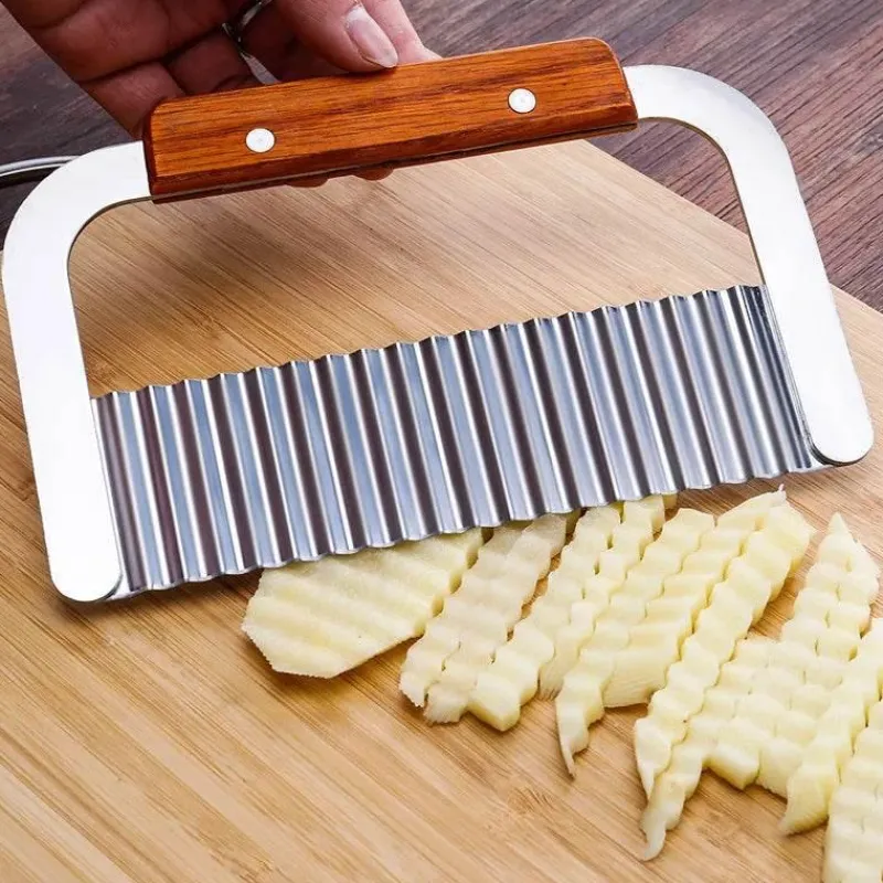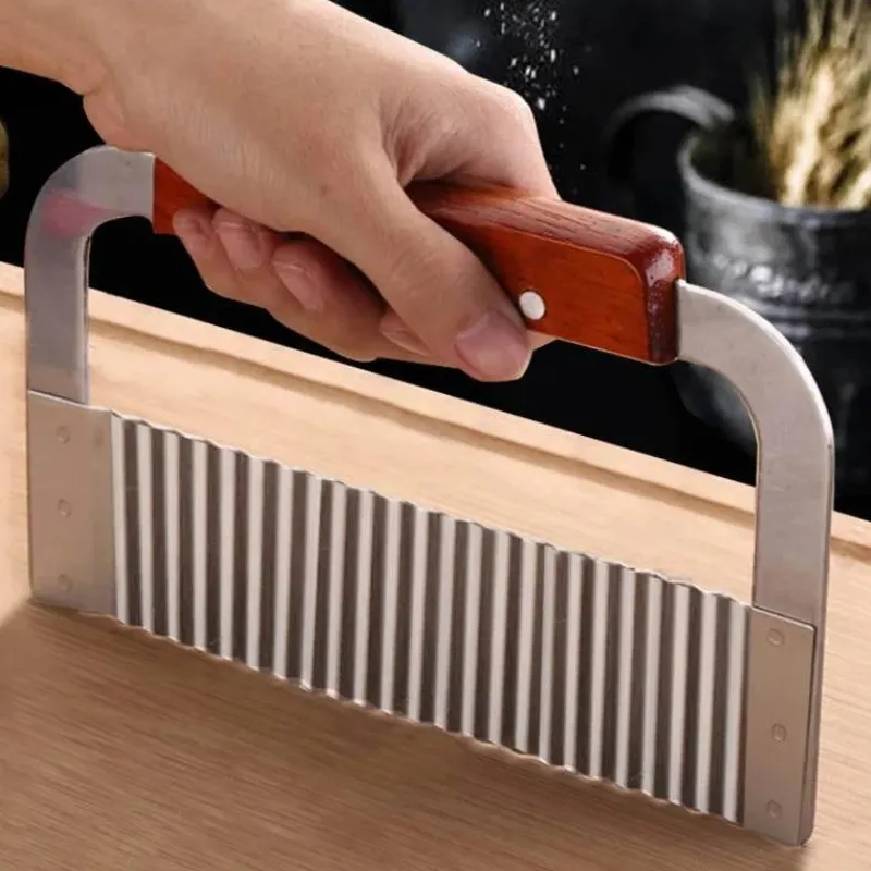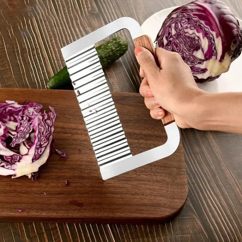 Wir präsentieren den Wavy Kartoffelschneider, einen Gemüseschneider aus Edelstahl, der Ihnen das Schneiden und Hacken erleichtert. Gefertigt aus hochwertigem Edelstahl und mit einem komfortablen Holzgriff bietet dieser Schneider Langlebigkeit und Benutzerfreundlichkeit für alle Ihre kulinarischen Bedürfnisse.