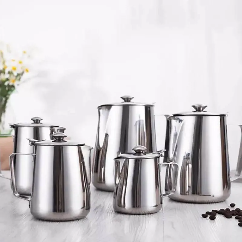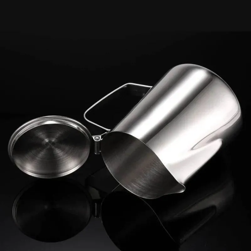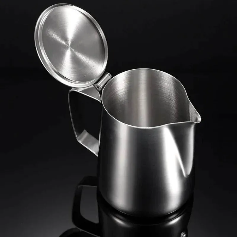 Entdecken Sie den Komfort und die Eleganz unseres Edelstahl-Milchaufschäumkännchens mit Deckel – ein unverzichtbares Werkzeug für Baristas und Kaffeeliebhaber. Hergestellt aus hochwertigem Edelstahl, ermöglicht Ihnen dieses Kännchen perfekt aufgeschäumte Milch für Lattes und Cappuccinos und veredelt so Ihr Kaffeeerlebnis.