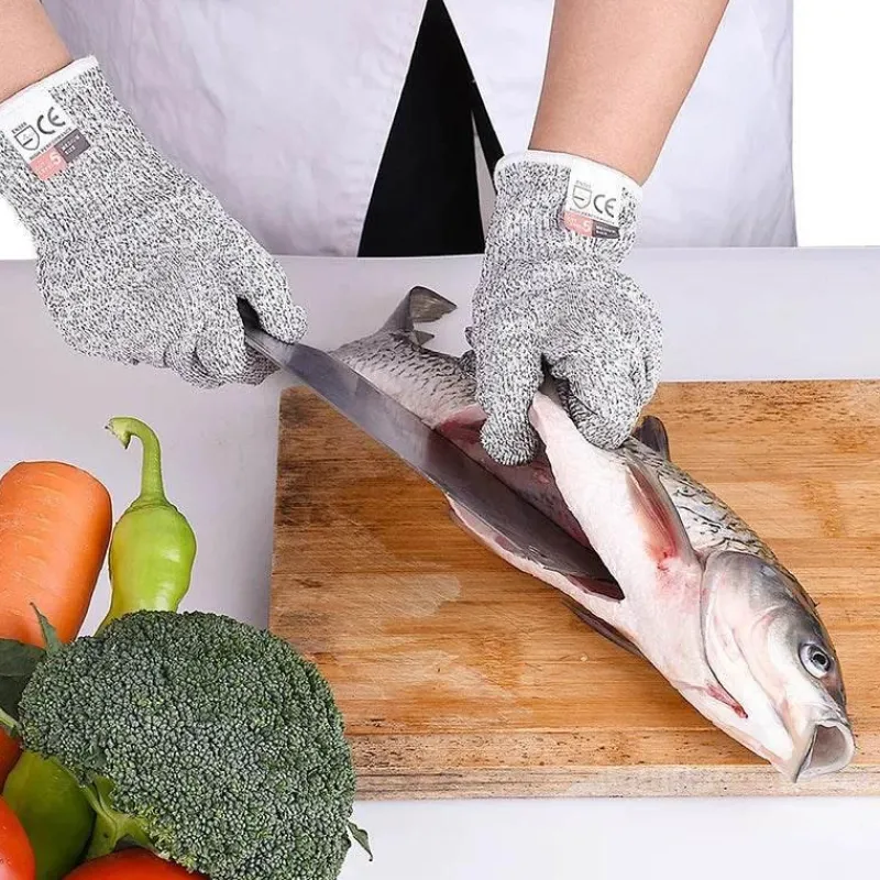Unsere Handschuhe aus fortschrittlichem HPPE-Material gewährleisten außergewöhnliche Haltbarkeit und Widerstandsfähigkeit gegen scharfe Gegenstände. Ob beim Schneiden, Würfeln oder beim Umgang mit scharfen Werkzeugen – diese Handschuhe bieten eine zuverlässige Barriere, die Ihre Hände vor Schnitten und Abschürfungen schützt.