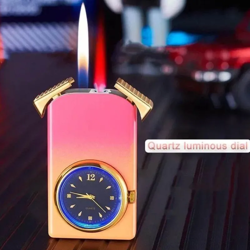 Wir präsentieren die Gradient Flame Lighter Watch, ein innovatives Accessoire, das die Funktionalität einer Armbanduhr mit dem Nutzen eines Feuerzeugs verbindet. Diese markante Uhr verfügt über einen dualen Feuermechanismus, der sowohl eine Standardflamme für alltägliche Aufgaben als auch eine winddichte Jetflamme bietet und sich somit perfekt für Outdoor-Aktivitäten eignet. Das markante Farbverlaufsdesign verleiht Ihrem Outfit eine lebendige Note und bereichert Ihre Accessoire-Sammlung. Sie ist eine ausgezeichnete Wahl für den Alltag oder als aufmerksames Geschenk für einen besonderen Menschen.