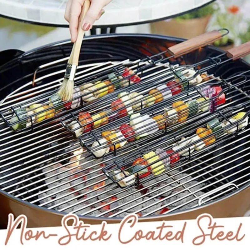 Dieses vielseitige Grillzubehör hält Ihr Grillgut beim Grillen an Ort und Stelle. Hergestellt aus lebensmittelechtem Edelstahl leitet es die Hitze effizient und sorgt für gleichmäßiges Garen. Die scharfen Enden der Spieße stechen mühelos durch verschiedene Grillgutsorten, während der praktische Ring an der Rückseite schnelles und müheloses Wenden ermöglicht. Dieser Korb eignet sich perfekt zum Aufspießen von Garnelen, Schaschlik, Hähnchen, Steak und sogar zum Rösten von Marshmallows am Feuer und macht Ihr Grillerlebnis noch besser.