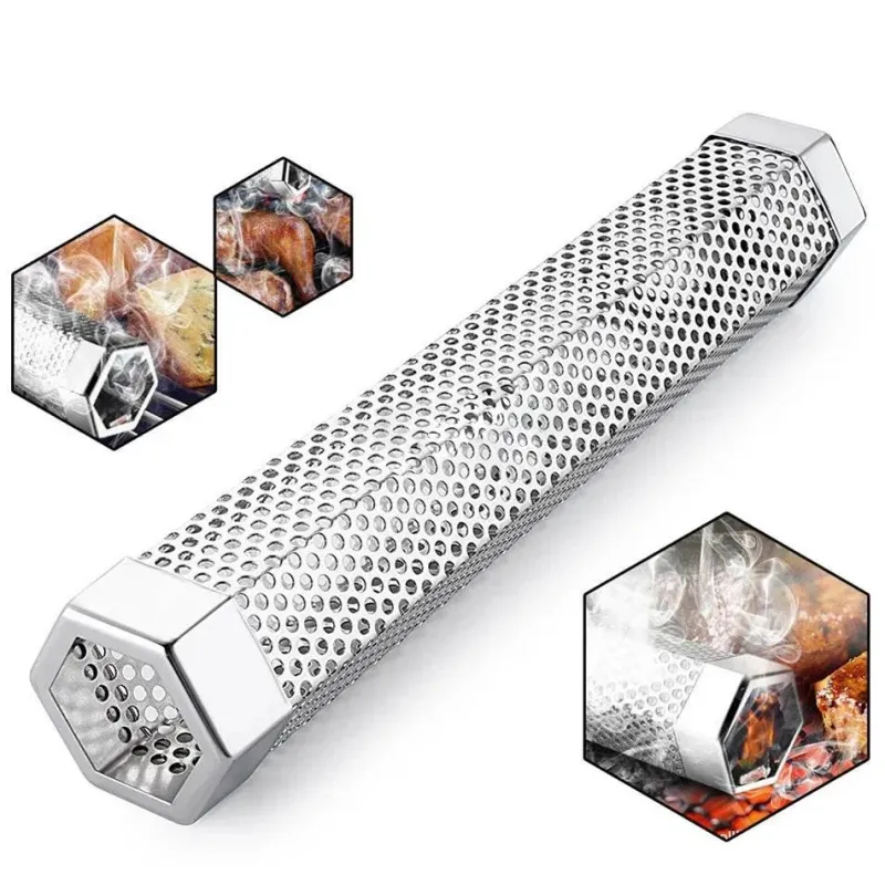 Verbessern Sie Ihr Grillerlebnis mit unserem fachmännisch gefertigten BBQ-Räucherrohr aus Edelstahl, das Ihren Speisen ein intensives Raucharoma verleiht. Die einzigartige sechseckige Form sorgt für eine optimale Rauchverteilung und sorgt dafür, dass Ihr Fleisch und Gemüse mit jedem Bissen ein unwiderstehliches Aroma erhält. Das Räucherrohr aus robustem 304 Edelstahl ist hitzebeständig und korrosionsbeständig und garantiert so zuverlässige Leistung für viele Grillsaisons.