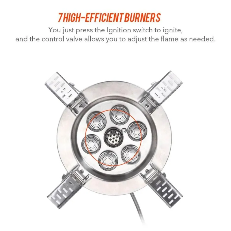 Für zusätzliche Stabilität auf unebenem Gelände verfügt der Ofen über zusammenklappbare Beine, die seine Zuverlässigkeit bei jedem Outdoor-Abenteuer erhöhen.