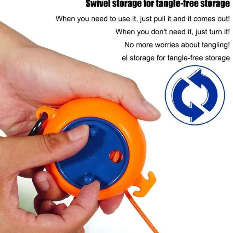 Diese tragbare Reisewäscheleine ist speziell für den Einsatz im Freien konzipiert und bietet eine effiziente Lösung zum Trocknen von Kleidung beim Camping oder auf Reisen. Dank ihrer kompakten und leichten Bauweise lässt sie sich einfach zusammenfalten und platzsparend in Rucksäcken, Koffern oder Campingausrüstung verstauen.