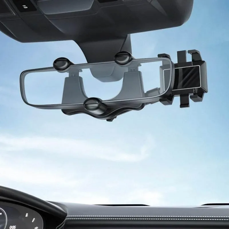 In der Box finden Sie einen drehbaren Telefonhalter für den Rückspiegel, der Ihre Fahrten vereinfacht.